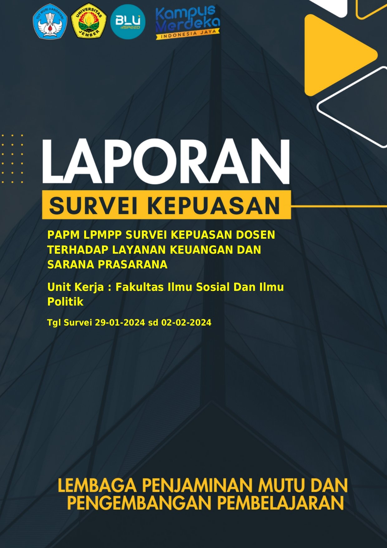 - Melaksanakan survey kepuasan dosen, mahasiswa, tenaga kependidikan, alumni dan pengguna lulusan untuk meningkatkan mutu penyelenggaraan pendidikan dan kualitas lulusan secara berkelanjutan.