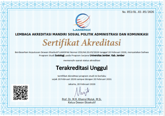 Program Studi (Prodi) Sosiologi pada Fakultas Ilmu Sosial dan Ilmu Politik (FISIP) Universitas Jember (UNEJ) resmi mencatatkan pencapaian gemilang di awal tahun 2026. Melalui keputusan terbaru Lembaga Akreditasi Mandiri Ilmu Sosial, Politik, Administrasi, dan Komunikasi (LAMSPAK), prodi tersebut berhasil meraih predikat akreditasi “Unggul”. Pencapaian ini menjadi tonggak sejarah baru dalam mempertegas posisi Sosiologi UNEJ sebagai salah satu pusat studi sosial terbaik di wilayah Jawa Timur bagian timur.