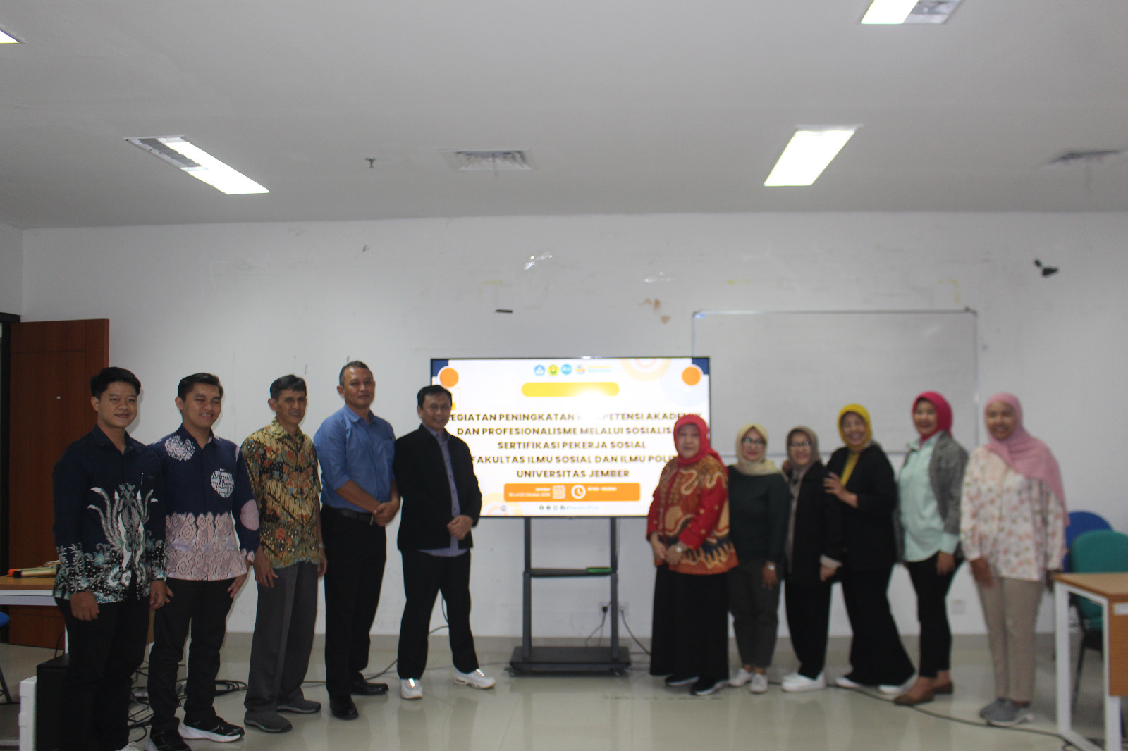 Fakultas Ilmu Sosial dan Ilmu Politik Universitas Jember (FISIP UNEJ) kembali menunjukkan komitmennya dalam meningkatkan mutu pendidikan dan profesionalisme lulusannya. Kali ini, FISIP UNEJ menyelenggarakan kegiatan strategis bertajuk “Peningkatan Kompetensi Akademik dan Profesionalisme Melalui Sosialisasi Sertifikasi Pekerja Sosial”. Kegiatan yang digelar di Gedung IsDB (Islamic Development Bank) FISIP UNEJ ini bertujuan untuk menjembatani kesenjangan antara dunia akademik dengan standar kompetensi yang dibutuhkan di dunia kerja profesional.